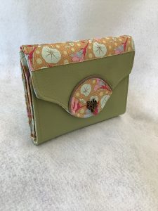 Portefeuille avec porte-monnaie porte-carte compartiment à billets. Idéale pour tous les papiers. Largeur 15 cm hauteur 13 cm fermeture par un bouton pression portefeuille original