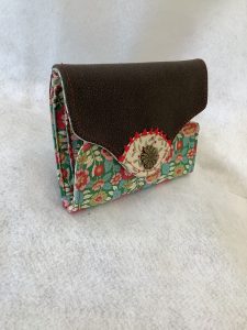 Portefeuille avec porte-monnaie porte-carte compartiment à billets. Idéale pour tous les papiers. Largeur 15 cm hauteur 13 cm fermeture par un bouton pression portefeuille original