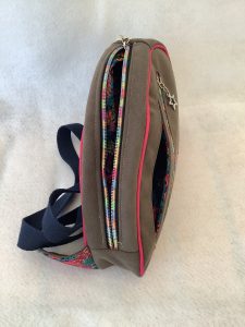 Sac inspiré du sac banane sur la face avant une poche avec fermeture une petite poche plaquée et une grande ouverture sur le côté