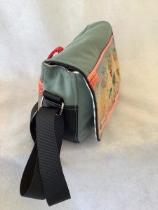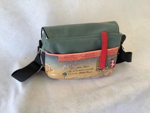 Sac besace avec rabat. Bandoulière réglable une poche extérieure avec son porte-clés une à deux poches intérieur avec un magnifique coupon velours de l’atelier de Noémie. Taille largeur 23 hauteur 16 profondeur 8 cm